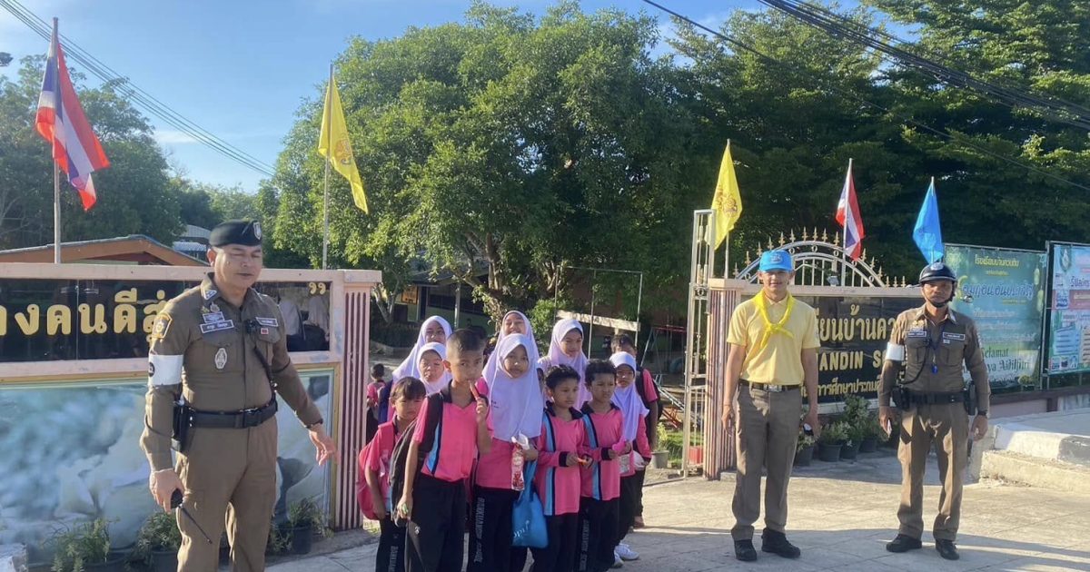 ออกรักษาความปลอดภัยและอำนวยความสะดวกด้านการจราจรแก่คณะครูและนักเรียนโรงเรียนบ้านควนดินและโรงเรียนวัดสุวรรณากร