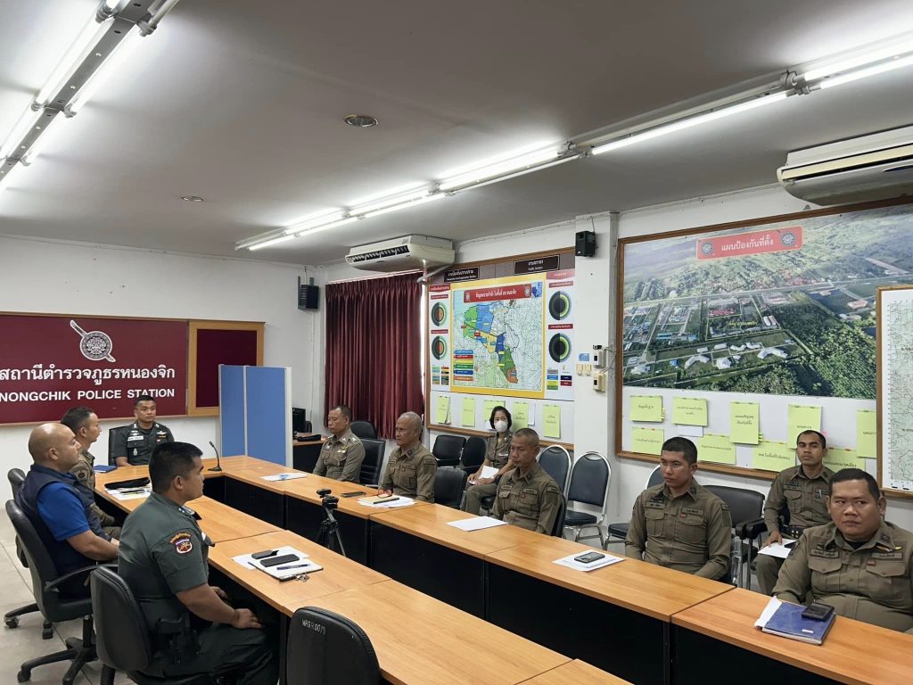 พร้อมข้าราชการตำรวจผู้เกี่ยวข้องร่วมเข้าประชุม เฝ้าฟังการประชุม ศปก.ตร.สน./warroom รับทราบสรุป ข้อสั่งการ ติดตามวิเคราะห์สถานการณ์ความเคลื่อนไหว เร่งรัดสั่งการภารกิจสำคัญผ่านระบบประชุมทางไกล (Video Conference) ณ ห้อง ศปก.สภ.หนองจิก