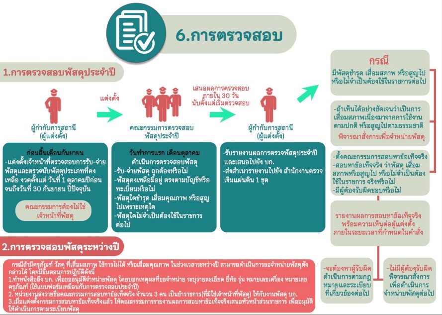 2.กำหนดแนวทางควบคุม กำกับดูแลรักษา ตรวจนับ ตรวจสอบสภาพการใช้งานทรัพย์สินของราชการ ของบริจาคโดยเฉพาะทรัพย์ประเภทที่มีความเสี่ยงในการนำไปใช้โดยมิชอบ