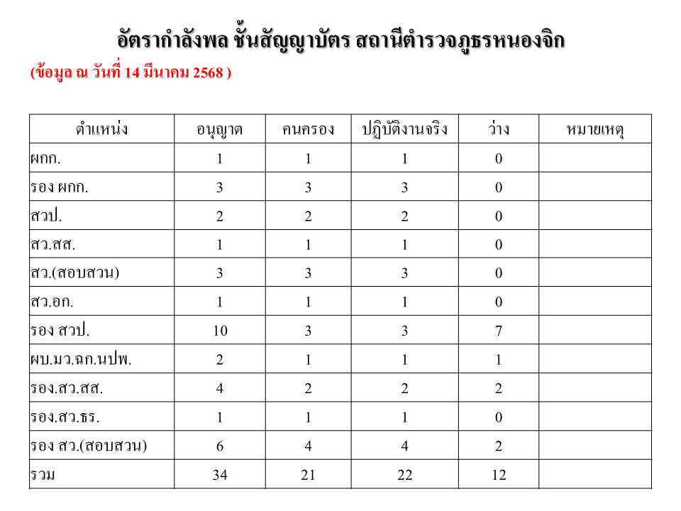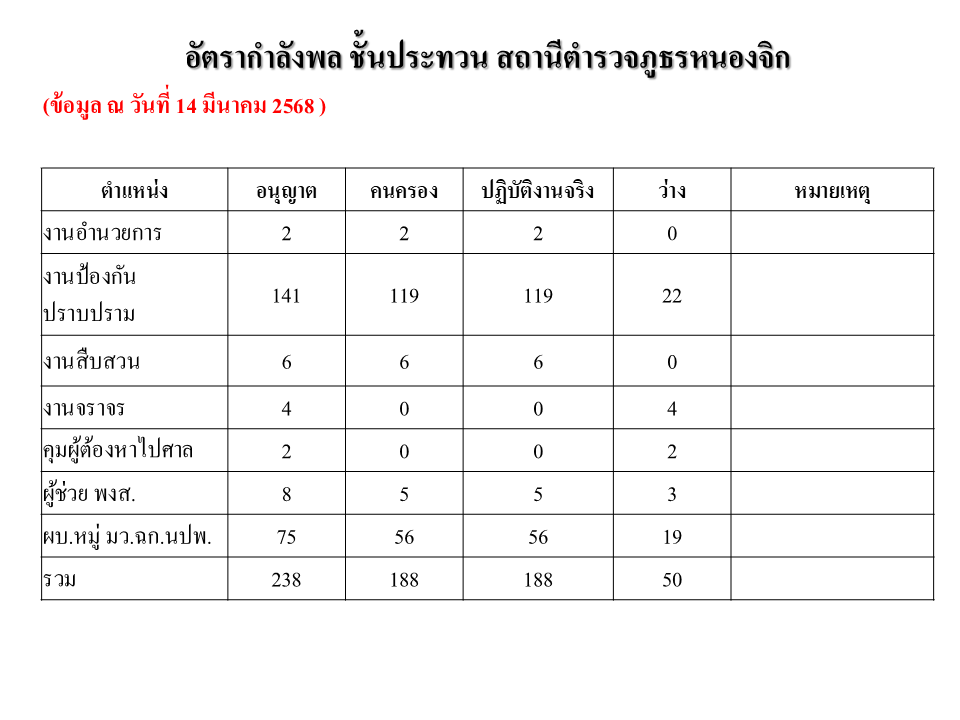 อัตรากำลังของสถานีตำรวจภูธรหนองจิก