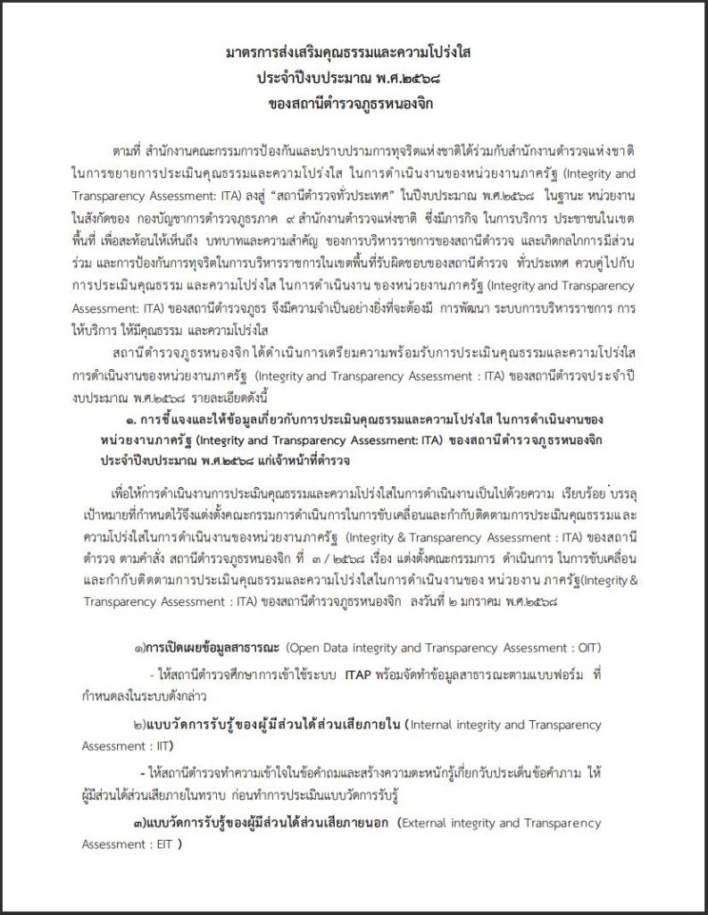 1. ผลการดำเนินการตามมาตรการยกระดับคุณธรรมและความโปร่งใสภายในหน่วยงาน