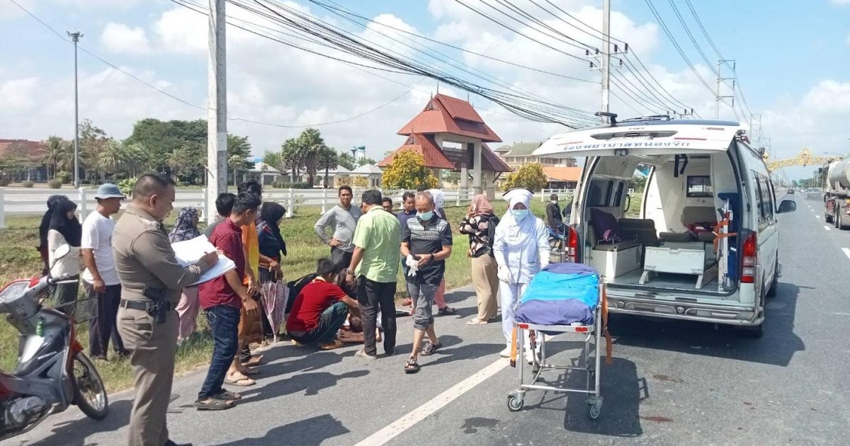 ร้อยเวร 60 สภ.หนองจิก เข้าช่วยเหลือเหตุรถชนกัน ระหว่างรถยนต์กับรถจักรยานยนต์เหตุเกิดหน้าศูนย์โอท๊อปถนนสาย 43