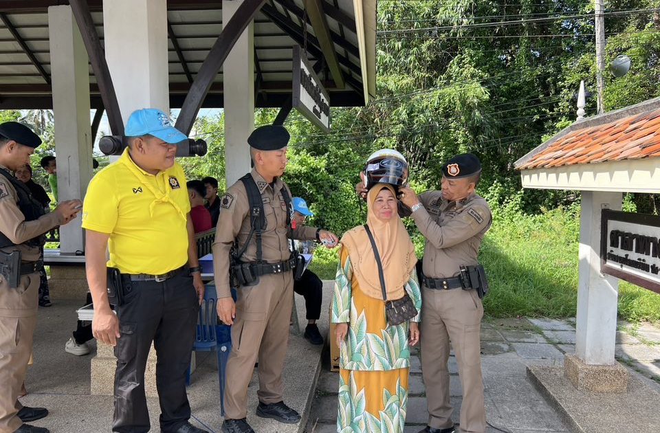 ร่วมอบรมกฎจราจร การขับขี่ยานพาหนะอย่างปลอดภัย พร้อมทั้งแจกจ่ายหมวกนิรภัย แก่ประชาชนในพื้นที่ ตามโครงการ “จิตอาสาจราจร รณรงค์การขับขี่ปลอดภัย สวมหมวกนิรภัย เพื่อลดอุบัติเหตุจราจรทางบก ในช่วงเทศกาลสงกรานต์ ประจำปี พ.ศ. 2568”