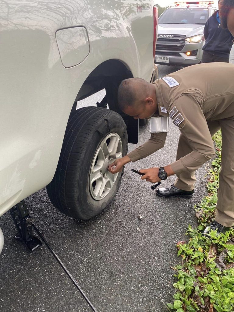 สายตรวจจราจร สภ.หนอกจิก ให้การช่วยเหลือ เหตุรถยนต์ ยางระเบิด ซึ่งเป็นรถยนต์ของ พ.ต.อ.หญิง กรุณา เหลืองเอกพันธ์ นวท.(สบ.4) กชว.ศพฐ.10