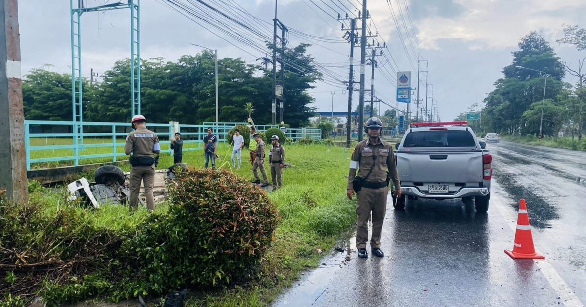 สายตรวจจราจร สภ.หนองจิก ออกให้ช่วยเหลือ เหตุรถยนต์เก๋งเสียหลักตกข้างทาง