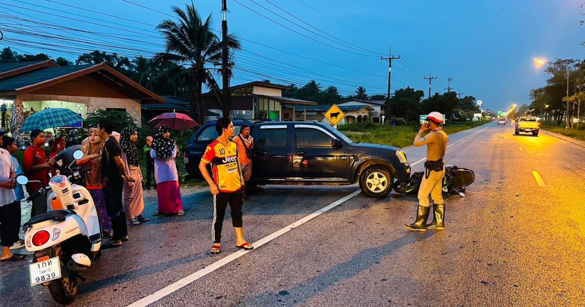 ออกช่วยเหตุรถชนระหว่างรถยนต์กระบะ กับรถจักรยานยนต์ มีผู้ได้รับบาดเจ็บ จำนวน 1 คน นำส่ง รพ.หนองจิก เหตุเกิด ถ.สาย 43 ฝั่งขาลง ตรงทางแยกเข้าฟาร์มตัวอย่าง ต.บางเขา อ.หนองจิก จว.ปัตตานี