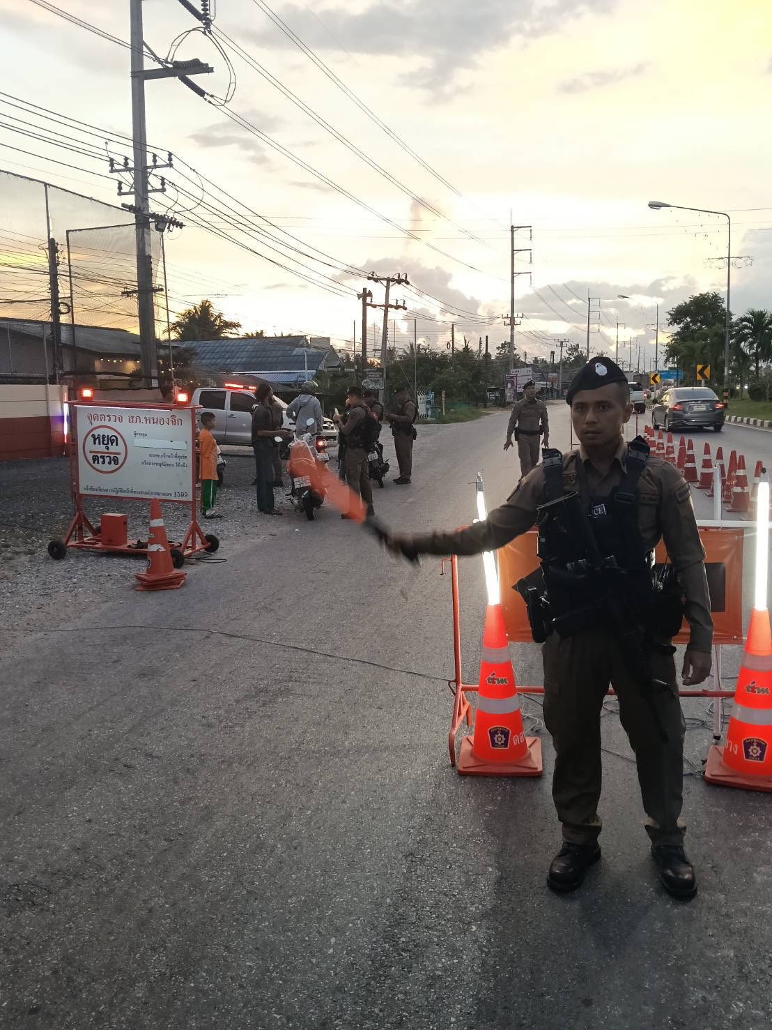 วันที่ 1 พ.ค.2568 เวลา 18.30 น.ร.ต.อ.เฉลิมชัย นาคคำ รอง สวป.สภ.หนองจิกหน.จุดตรวจดอนยางด.ต.เศกสรร อิน