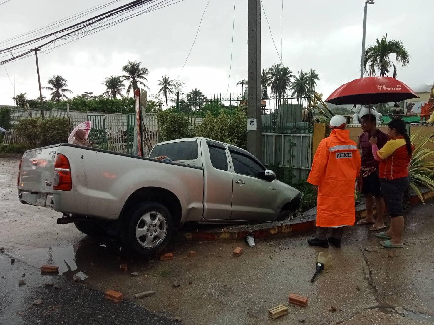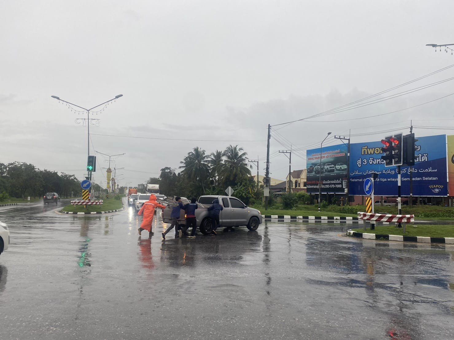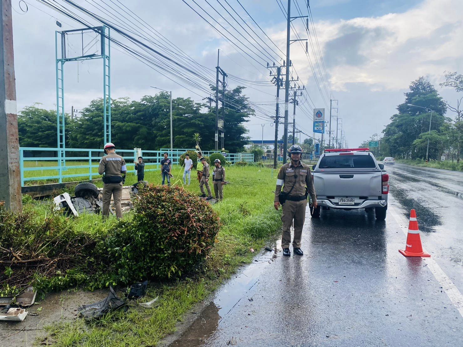 สายตรวจจราจร สภ.หนองจิก ออกให้ช่วยเหลือ เหตุรถยนต์เก๋งเสียหลักตกข้างทาง